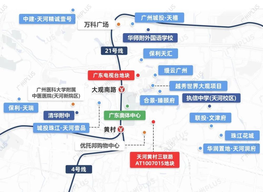调整后的天河,新增了广东电视台地块、黄村三联路AT1007015地块。