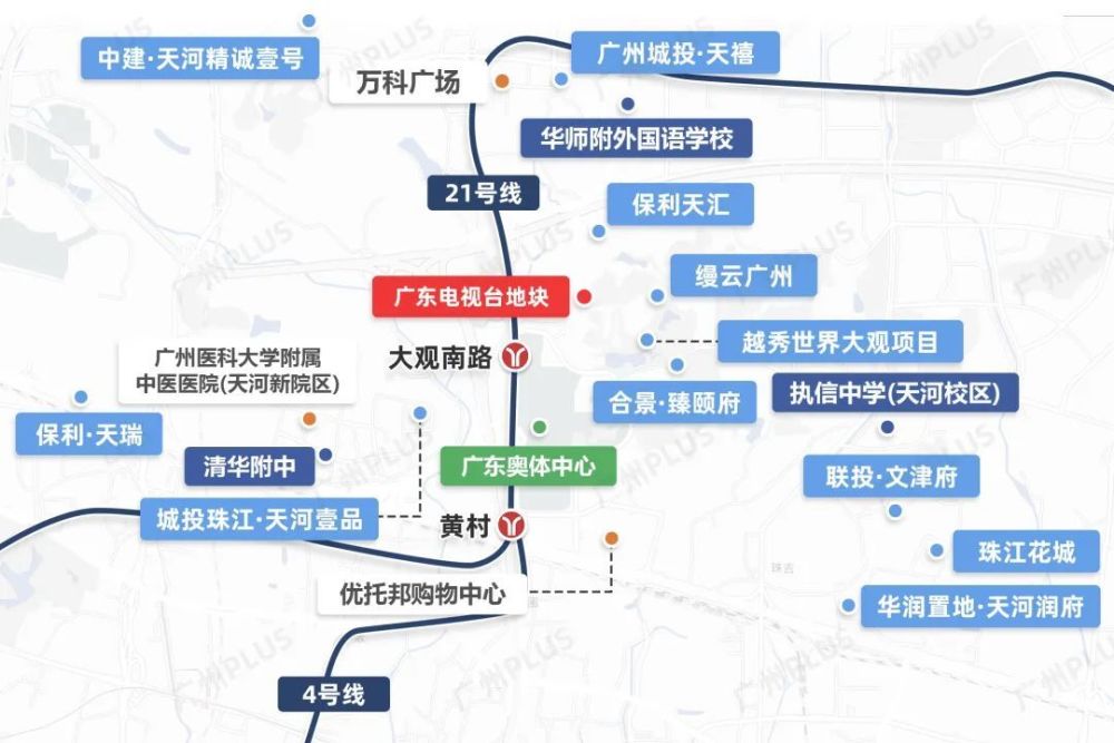 该地块位于天河智谷片区,南边是大热的连片开发的世界大观地块一二三期,以及广东奥体中心,到21号线大观南路站直线距离约550米,交通出行优势显著。