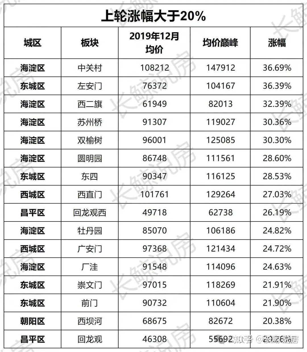 以上板块的统计数据,涵盖了东城、西城、海淀、朝阳、昌平、石景山等区域。虽然统计的区域,没有覆盖全部核心板块,但管中窥豹,可见一斑。