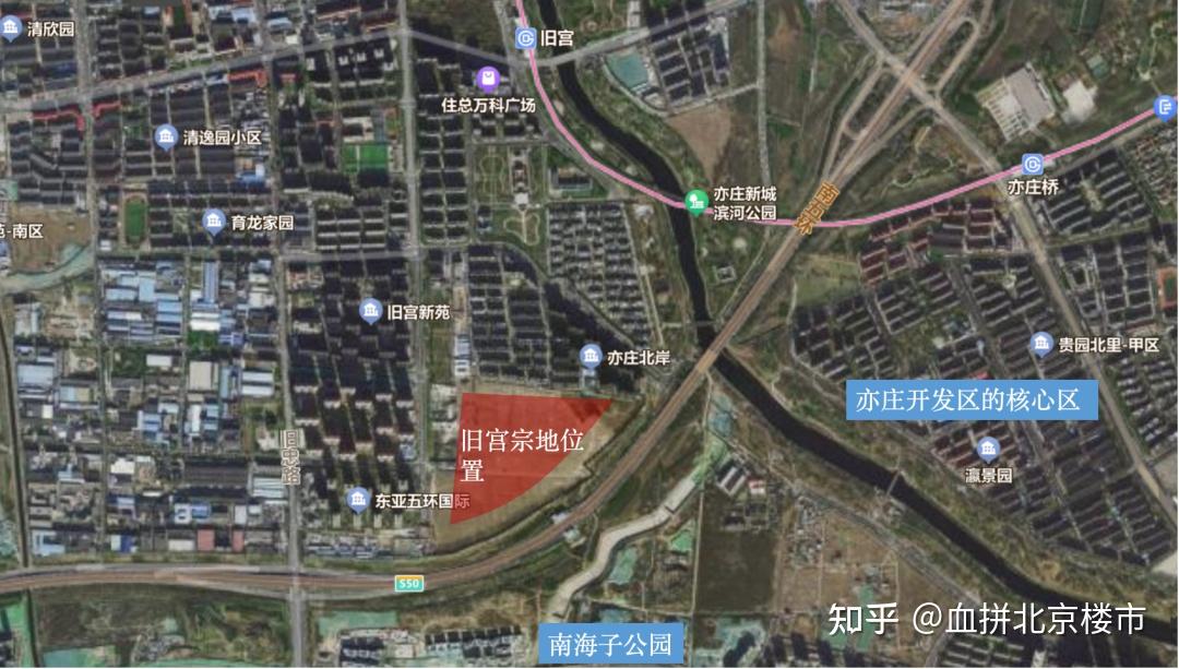 旧宫共有产权房宗地位于五环内。地块往北直线距离1.4公里是地铁旧宫站和住总万科广场,走路大概2公里,以后共享单车接驳应该没问题。东侧是凉水河和亦庄新城滨河森林公园;往东在五环外就是亦庄开发区的核心区;往南在五环外则是南海子公园。