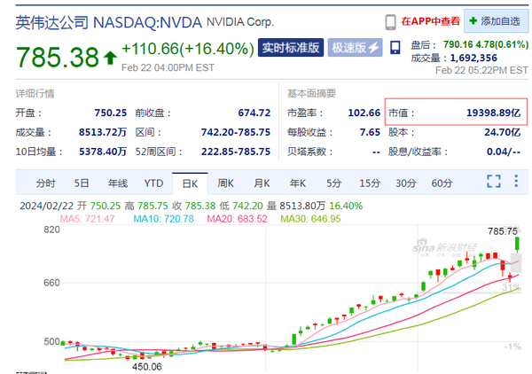 2月22日,英伟达公布了其第四季度财报,基于其对未来的业绩展望远超市场分析,第二天(周四)英伟达股价飙涨16.4%,单日市值飙升2770亿美元,创下了华尔街历史上最大单日涨幅的纪录。