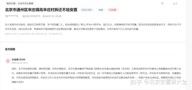 您好,关于您反映的问题,通州区回复:经宋庄镇核实,本次宅基地置换严格依据《新建北京至唐山城际铁路(宋庄段)工程项目高辛庄村宅基地上房屋置换补偿方案》执行。依据本项目安置方案第十四条:本项目实行房屋安置方式或一次性货币补偿方式,同一宗宅基地上的被搬迁人只能选择其中一种方式。市民诉求为两种并用,且重复补偿,不符合该项目政策要求。经拆迁工作人员多次对市民详细进行政策解释解答,市民家庭内部原因对补偿方式意见始终未统一,故该户尚未达成协议。感谢您对我们工作的理解与支持!