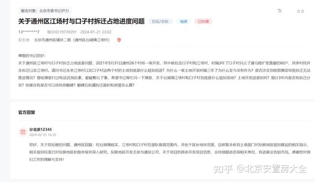 关于通州区江场村与口子村拆迁占地进度问题