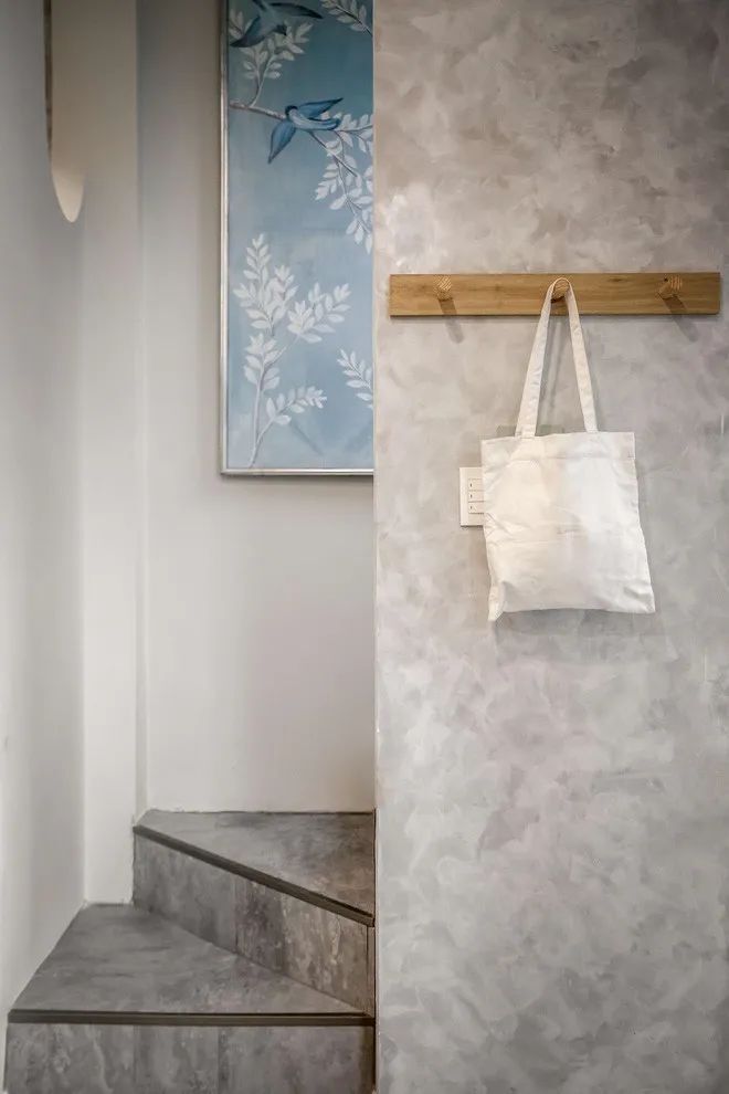 进门处墙壁上有一楼所有的开关,避免出门忘了关灯,回家立马开灯也不用摸黑,另外还有挂钩挂包包钥匙。