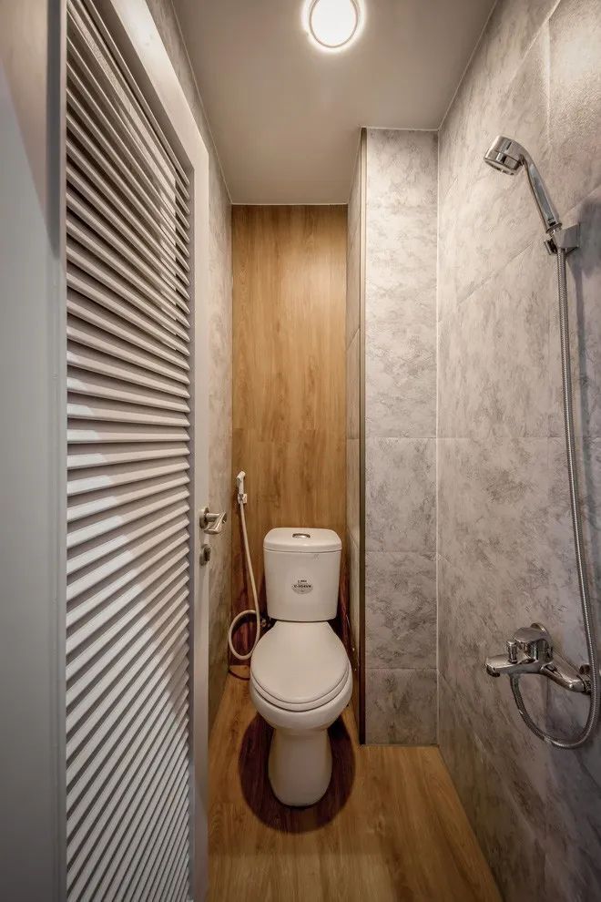 卫生间里同样是洗漱柜外移,而里面的浴室非常小,宽度也有限,所以并没有做干湿分离,体验感可能会略差一点。