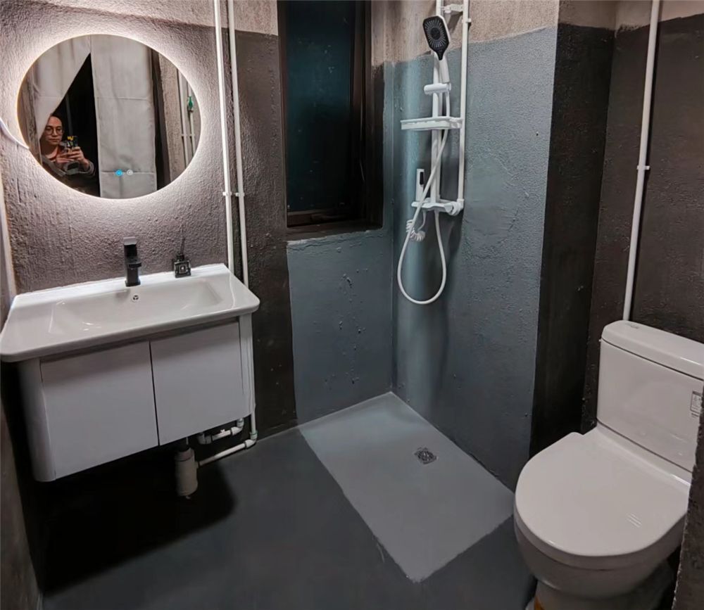 最后说说卫生间,他家的卫生间防水,是自己买材料回来做的,真的特别便宜,甚至还有富裕,即便直接在防水层上使用有所破损,自己也能及时修补,服了!