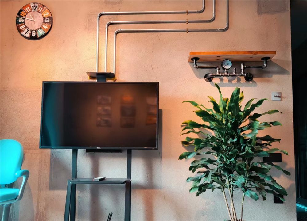 哦对了,电视上面这个支架,本身就是用废旧的水管钢管自己拼接成的,再加上几个螺丝钉,基本上没什么成本,看来想要直接住毛坯房,这种手工DIY的本领还是得多多少少有一些哒。