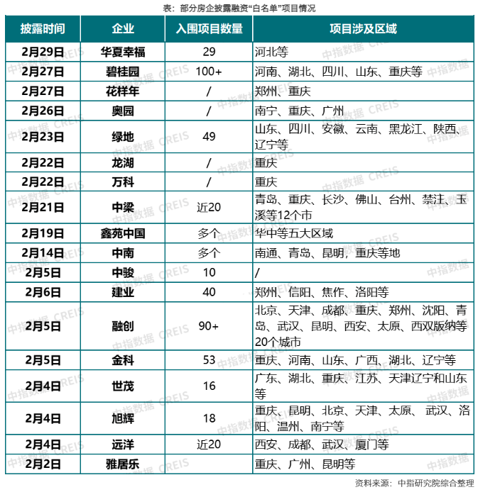 根据中指研究院监测,城市房地产融资协调机制建立以来,郑州、成都、重庆、昆明等城市上报项目数量均超200个,部分出险房企也有多个项目进入白名单,在“推送-反馈”工作闭环下,出险房企的项目获得融资支持的机会也有望增加,有利于进一步稳定市场预期。