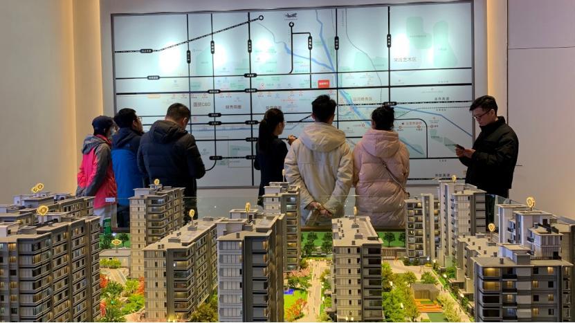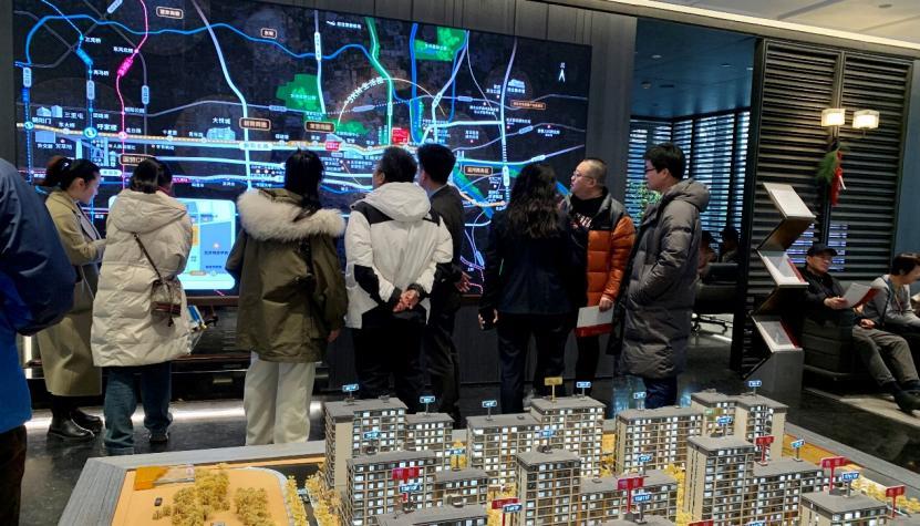 (通州某新房项目售楼处沙盘前的看房人 张达摄)