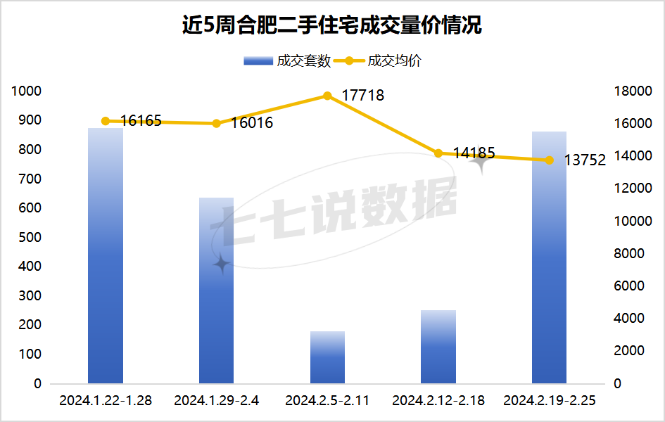二手房方面,2024年第8周(2月19日-2月25日),合肥全市二手房成交863套,环比上涨243.82%,二手房成交均价13752元/㎡,环比下降3.05%。上周二手房成交量上升明显,成交均价略微下降。