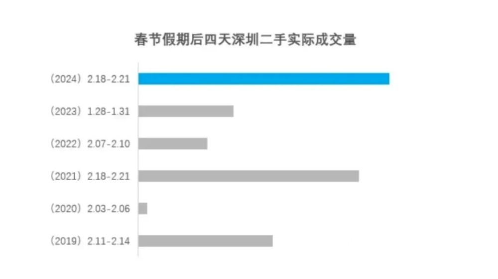 就在今年春节假期结束后四天,深圳二手房实际成交量创近五年新高,同比增长163.6%,比2019年增长87.1%。