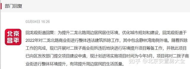 回龙观街道回复