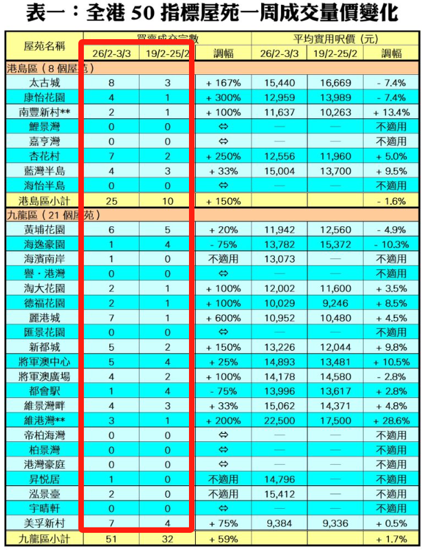 其实二手成交也起伏,香港中介机构利嘉阁统计了撤辣前后两周的数据变化