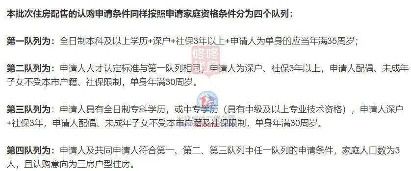 选房队列分为A队列和B队列。A队列指认购申请两房的选房队列;B队列指认购申请三房的选房队列。领军人才、四人及以上家庭只能选择其中一个队列参与排序并选房。
