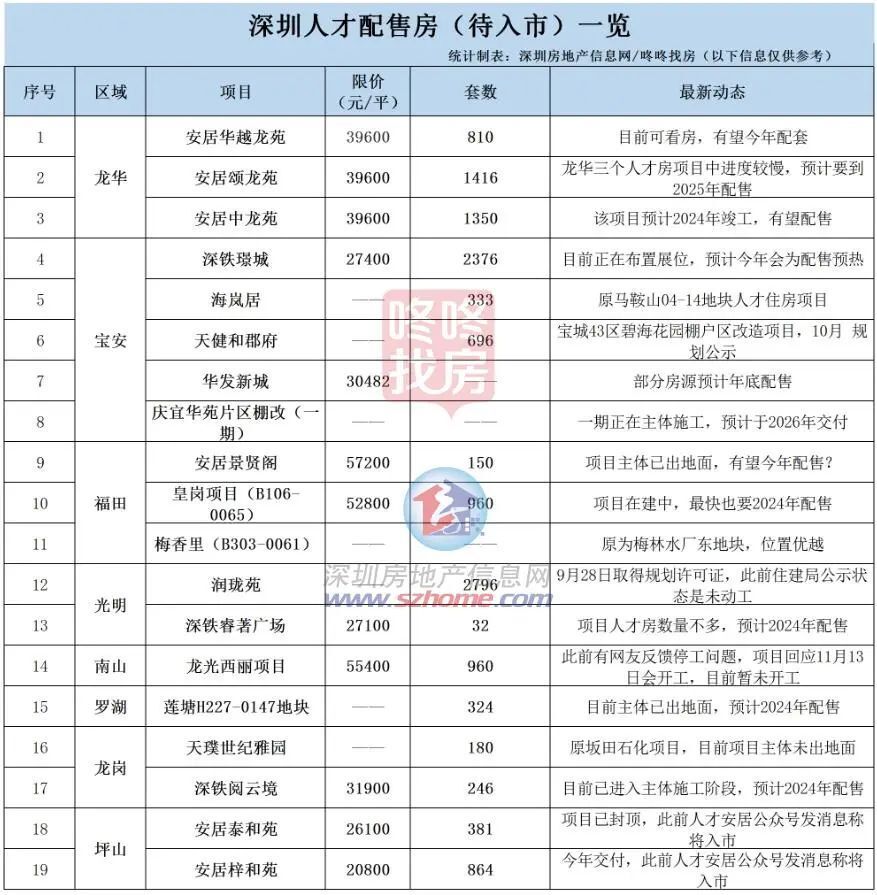 去化约有万套,今年应该也还有多个人才房入市,我们在去年底大概统计了一下待入市的相关项目(不完全),如下表,有购买需求的网友可先关注。