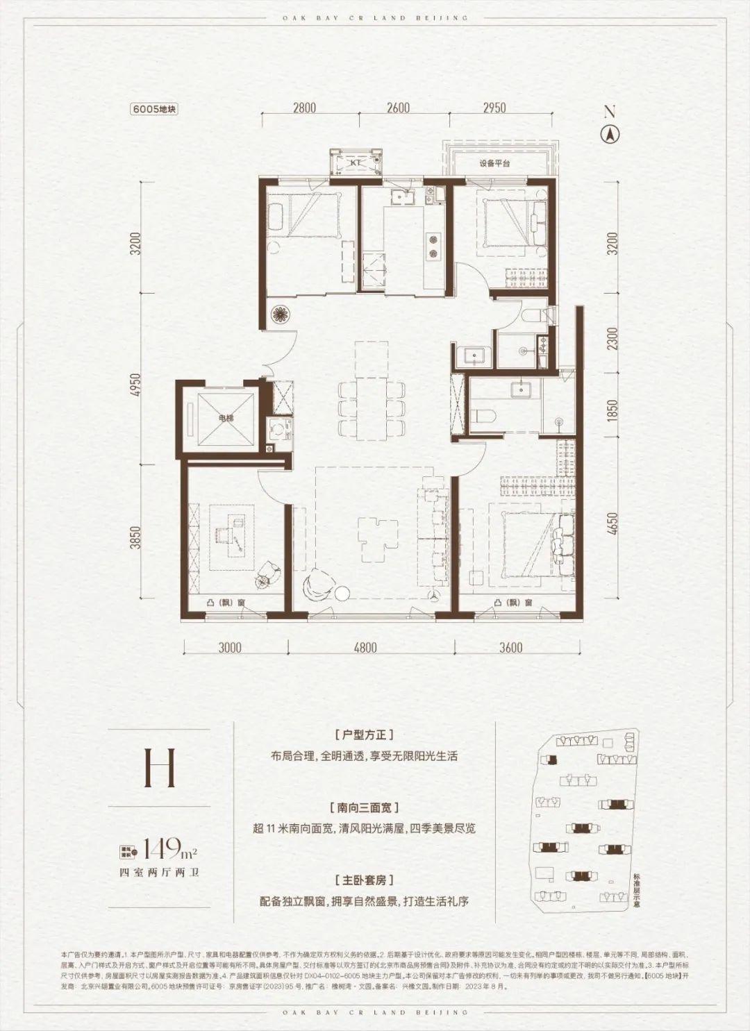 目前在售主力户型为建面约129/149平四室两卫和168平四室三卫。