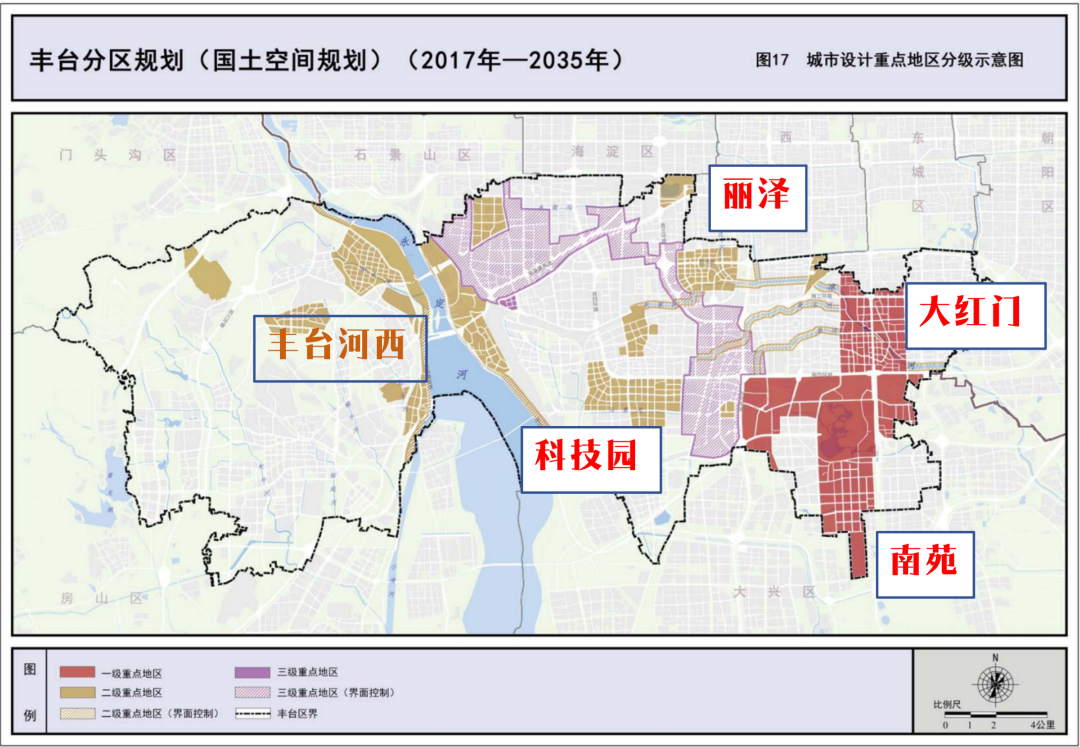 我原本以为,河西的规划只是打打酱油的辅助角色,但细心研究后发现,河西的规划级别比我预想的高多了。这是丰台区城市设计规划重点地区分级。