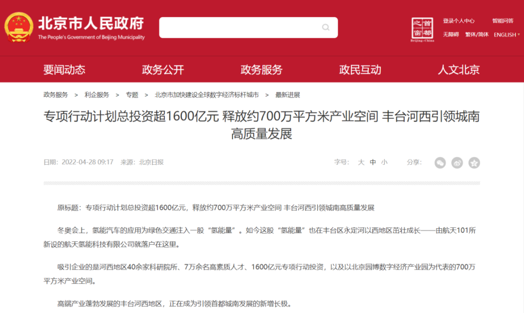 2021年底,丰台区出台《推动河西地区高质量发展专项行动计划(2021-2025年)》总投资超过1600亿元。
