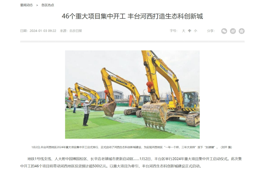 今年丰台河西开工46个重大项目,发展按下加速键。