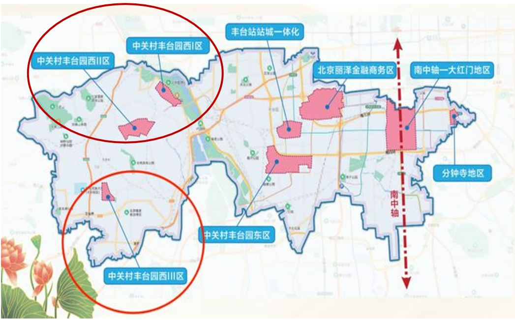 中关村丰台园西区,一共分为三区。