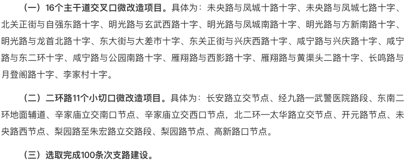 3.选择100条城市主干道和支路,开展工程微改造和智慧化改造试点。