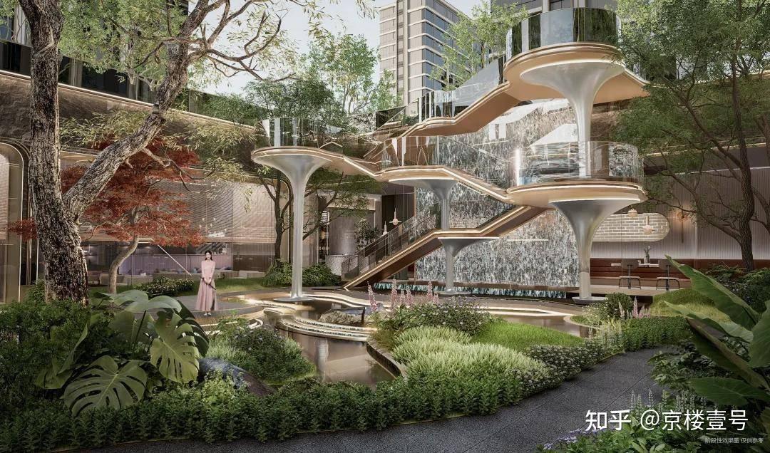 以《云山图》飞瀑景观为灵感,打造约600㎡云瀑庭院,内外飞瀑环绕,约7米高玻璃叠瀑,云梯环绕,扶摇直上。环梯下是约1800㎡私享会所,计划配备恒温泳池、健身房等。