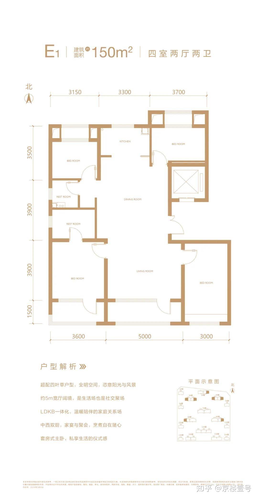 约150平是超配四叶草户型,主卧套房,私享生活不被打扰,全明空间,享受更恣意的阳光与风景,约5m宽厅阔境成为业主生活场和社交聚场。