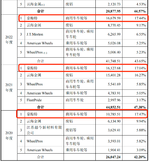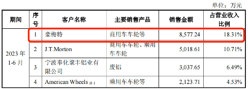 其中,宏鑫科技商用车车轮的主要客户为豪梅特,且豪梅特是其第一大客户。