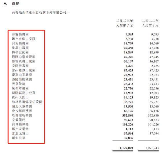 福寿园的墓地分布在全国各地,和福成股份一起被称为“南福寿、北福成,中国殡葬大小王”。