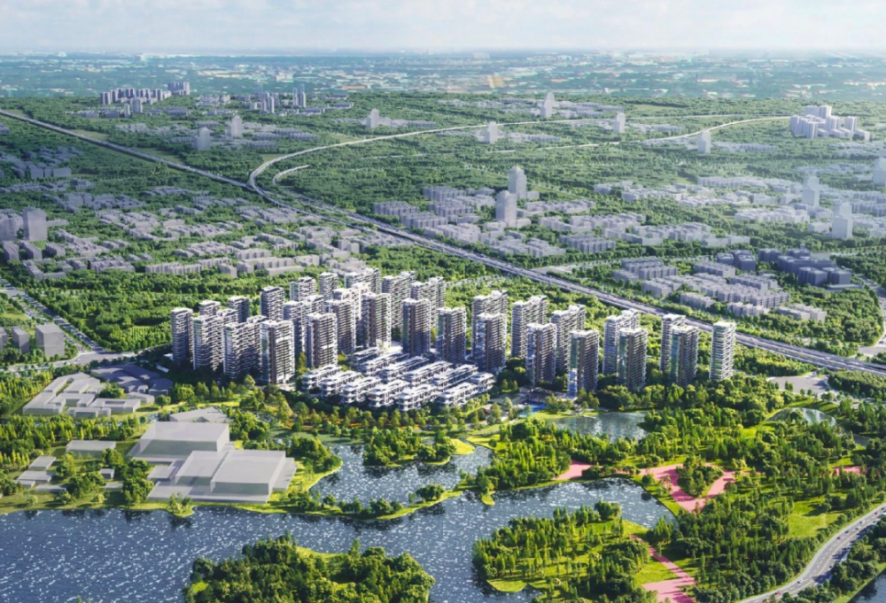 项目占地约258亩,容积率2.0,绿地率40%,规划建面约122-143㎡、建面约168-225㎡空中大平层,以及建面约233-266㎡湖屿叠院,整体采用南低北高的台地式布局。