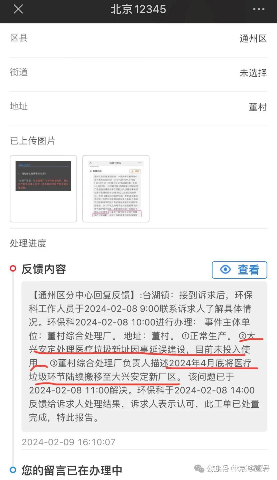 还有一点要说,大家可以发现上图中关于台湖董村垃圾场的回复,是通州区在处理。