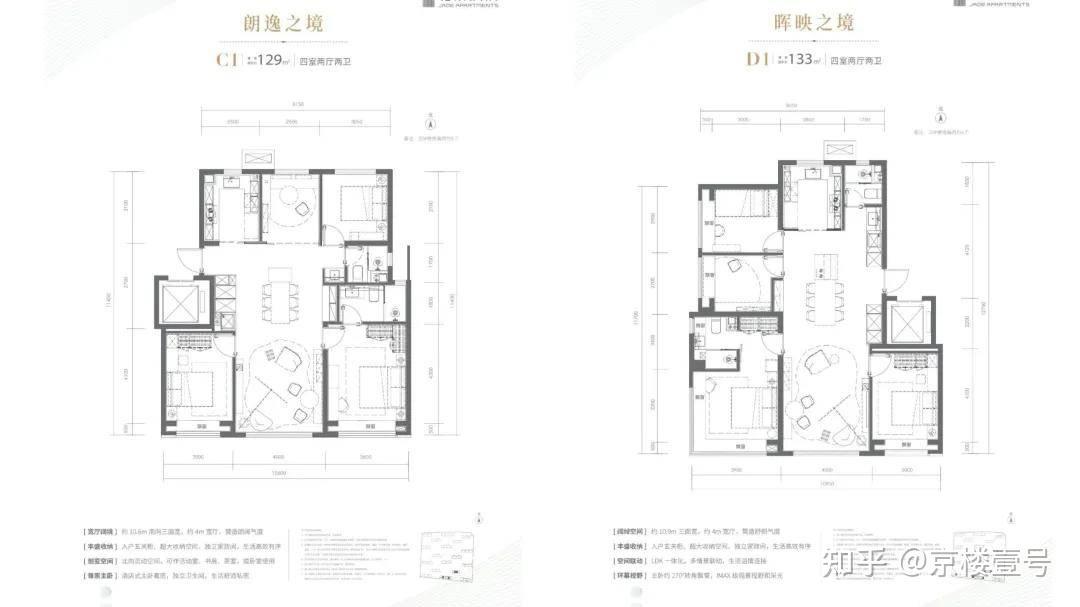 建面约133平米四居,两个卧室朝南,两次卧朝西;主卧L型转角飘窗,采光视野更好;格局和129差异很大,看个人喜好了。