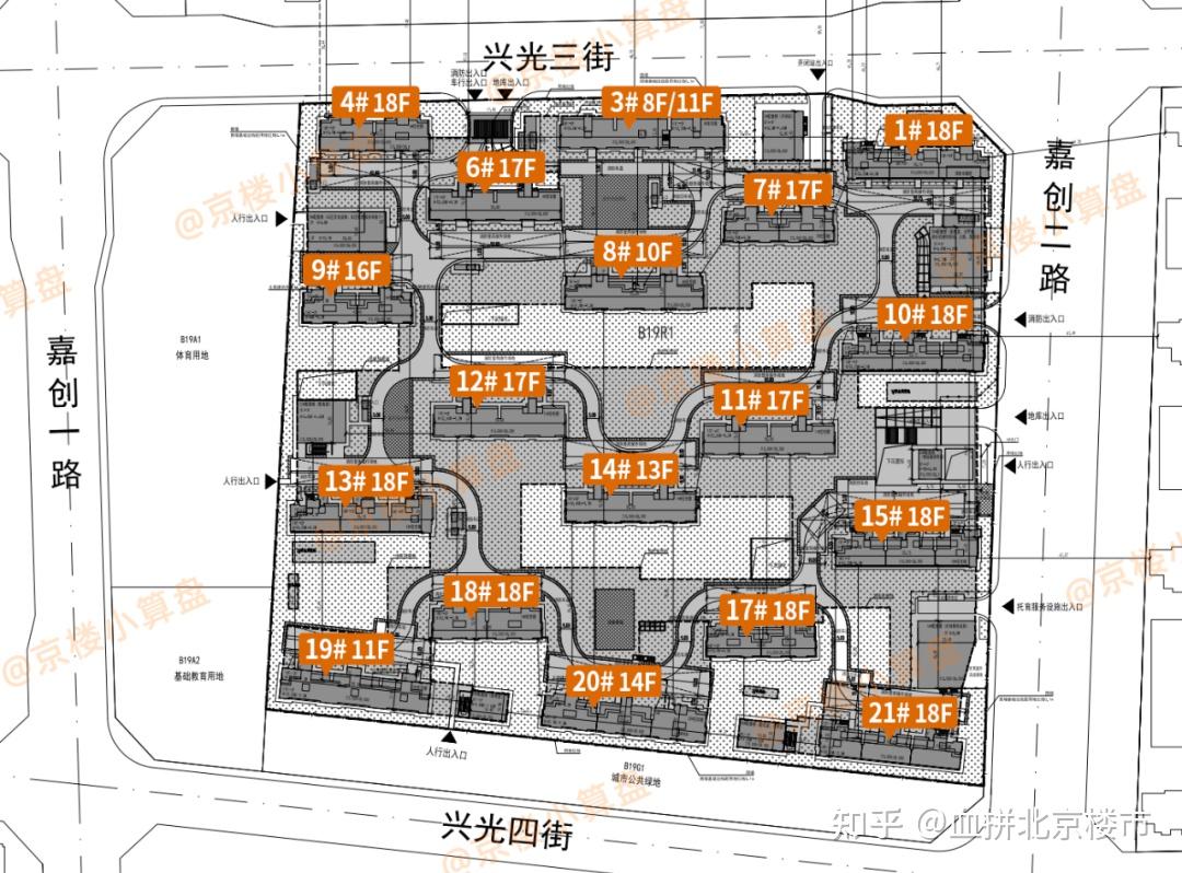 项目共规划18栋住宅楼,8-18层的高层+洋房,容积率2.5,控高60米。