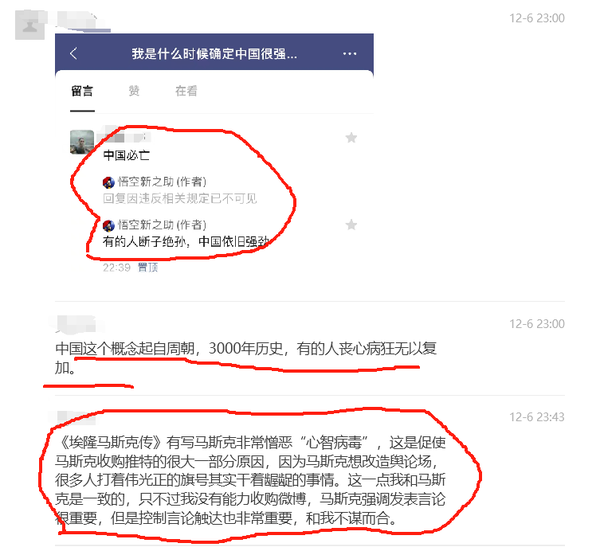 下图是前几天一篇文章的评论,其实只是其中一例,那天我收到很多类似丧心病狂言论。(留言的文章《我是什么时候确定中国很强大了?》)