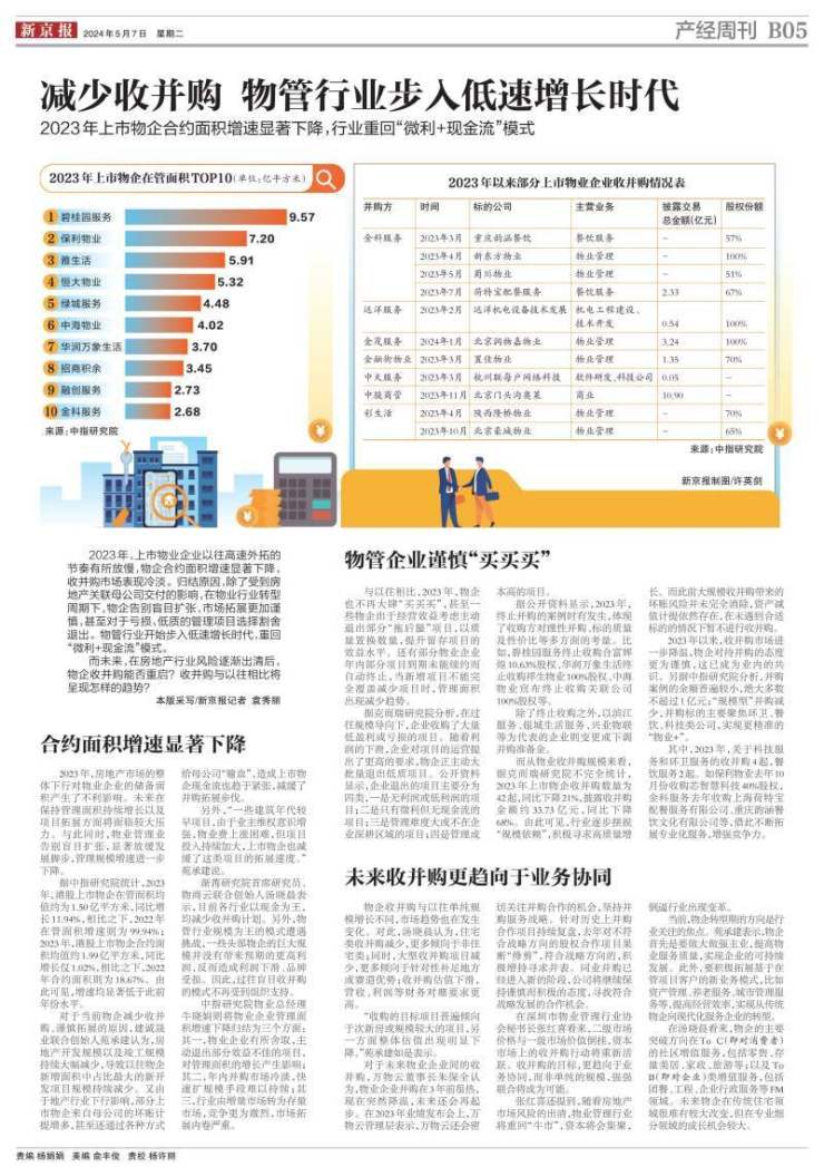 2024年5月7日新京报产经周刊《物业转型之路》。